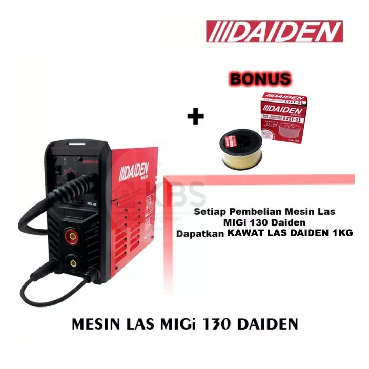 Mesin las Merk Daiden yang dapat Anda masukkan dalam daftar pembelian adalah tipe Daiden MIG-i 130. Harga MESIN LAS DAIDEN MIGi 130 TRAVOLAS TANPA GAS MIG 130 DAIDEN GASLESS. Masih mosfet kalo mau yg IGBT ada dari Daiden.
